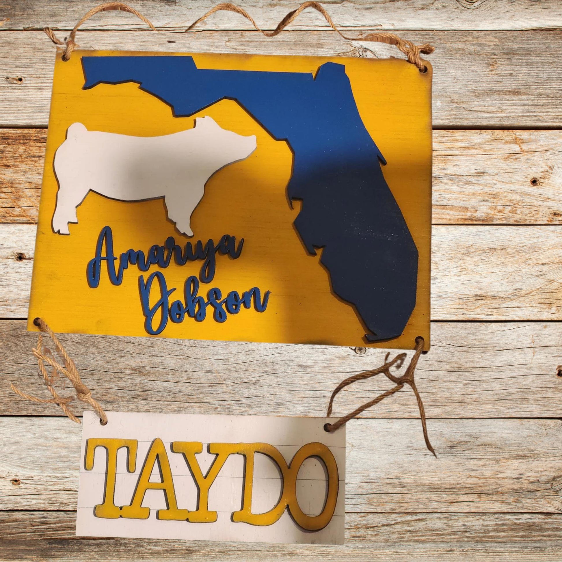 Each sign is laser-cut in the shape of West Virginia and personalized with your name, your animal’s name or breed, and optional 4-H or FFA club details. These signs are ideal for steer, pig, goat, lamb, turkey, or dairy goat projects and are handcrafted on our Arizona homestead.